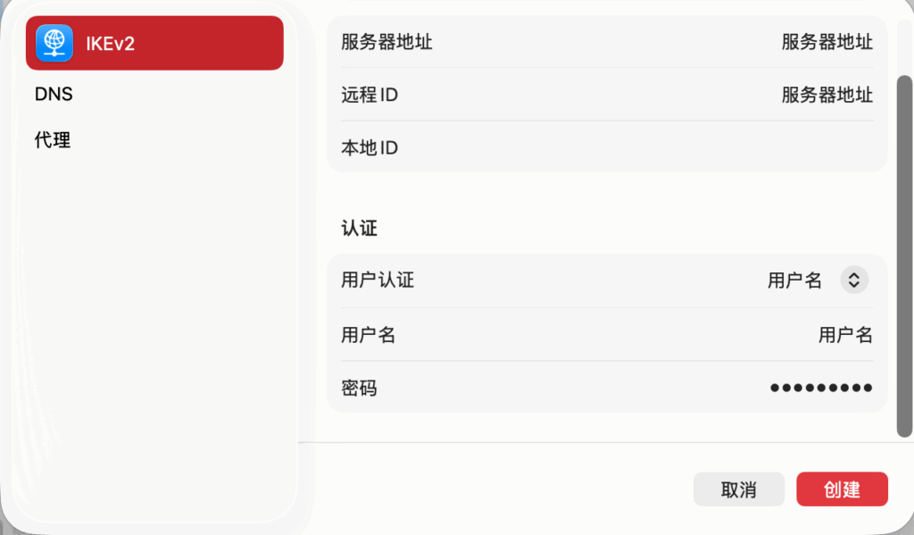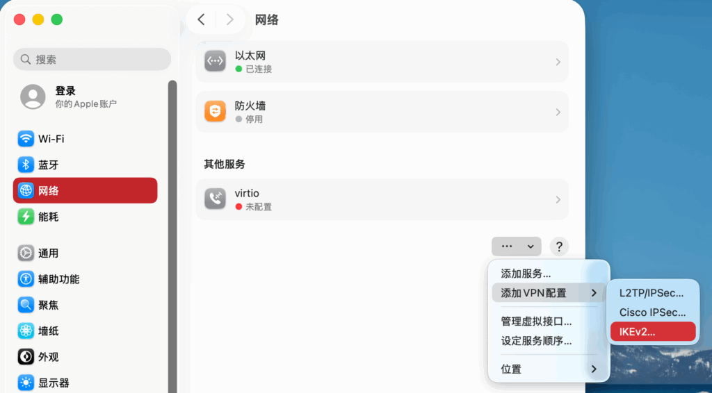 ,选取“添加 VPN 配置”,然后选取 IKEv2…